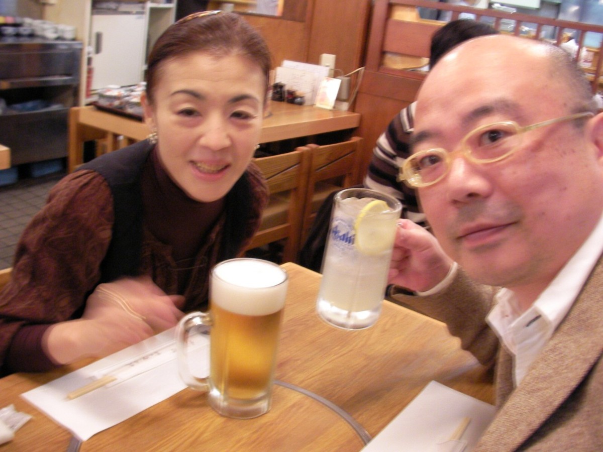 私はレモンサワー、カミさんは生ビール。