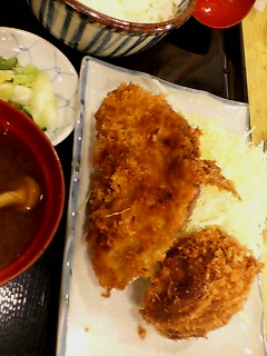 鯵フライとメンチ定食六百九十円。